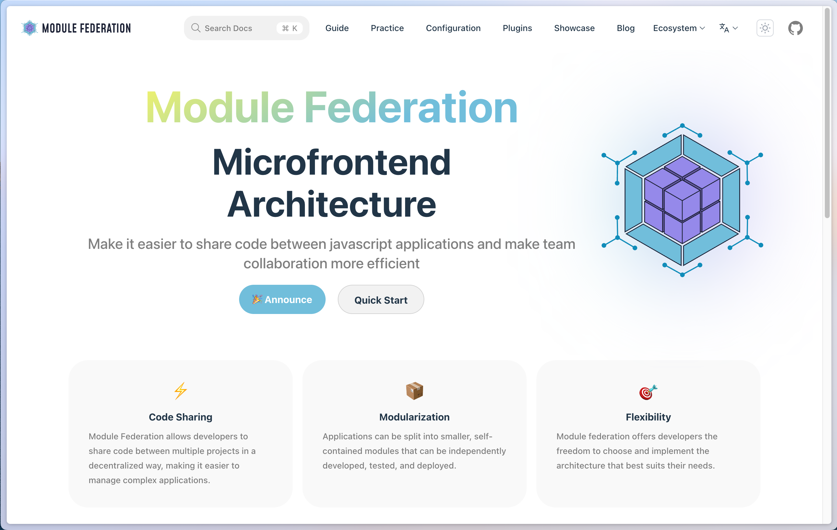 Today, we are excited to announce the official release of Module Federation 2.0! This new version is a collaborative effort between the ByteDance Web Infra team, the author of Module Federation, Zack Jackson and several of our community members. Special thanks to @ilteoood, @patricklafrance and @crutch12. Module Federation 2.0 addresses many issues from the previous version, building upon ByteDance's internal practices and the existing community ecosystem of Module Federation.